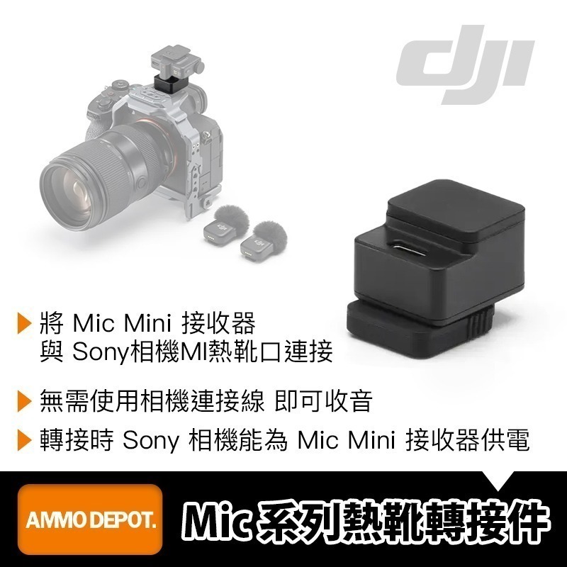 在使用該轉接件時,Sony 相機還能為 DJI Mic Mini 接收器供電。
