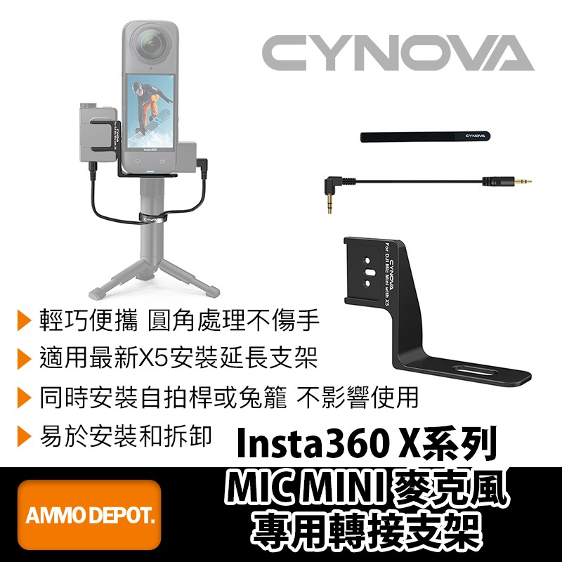本賣場為 CYNOVA Insta360 X系列 MIC MINI麥克風專用轉接支架 #C-MI-MS-09 賣場,不包含其他配件,拍照商品僅供參考。