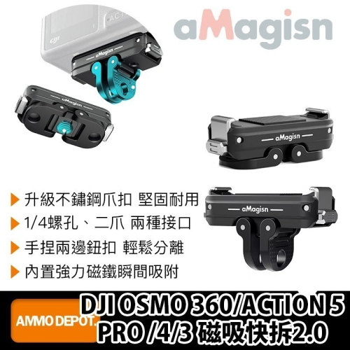 本賣場為 aMagisn DJI OSMO 360/ACTION 5 PRO/4/3 磁吸快拆2.0 #AA22 賣場,不包含其他配件,拍照商品僅供參考。