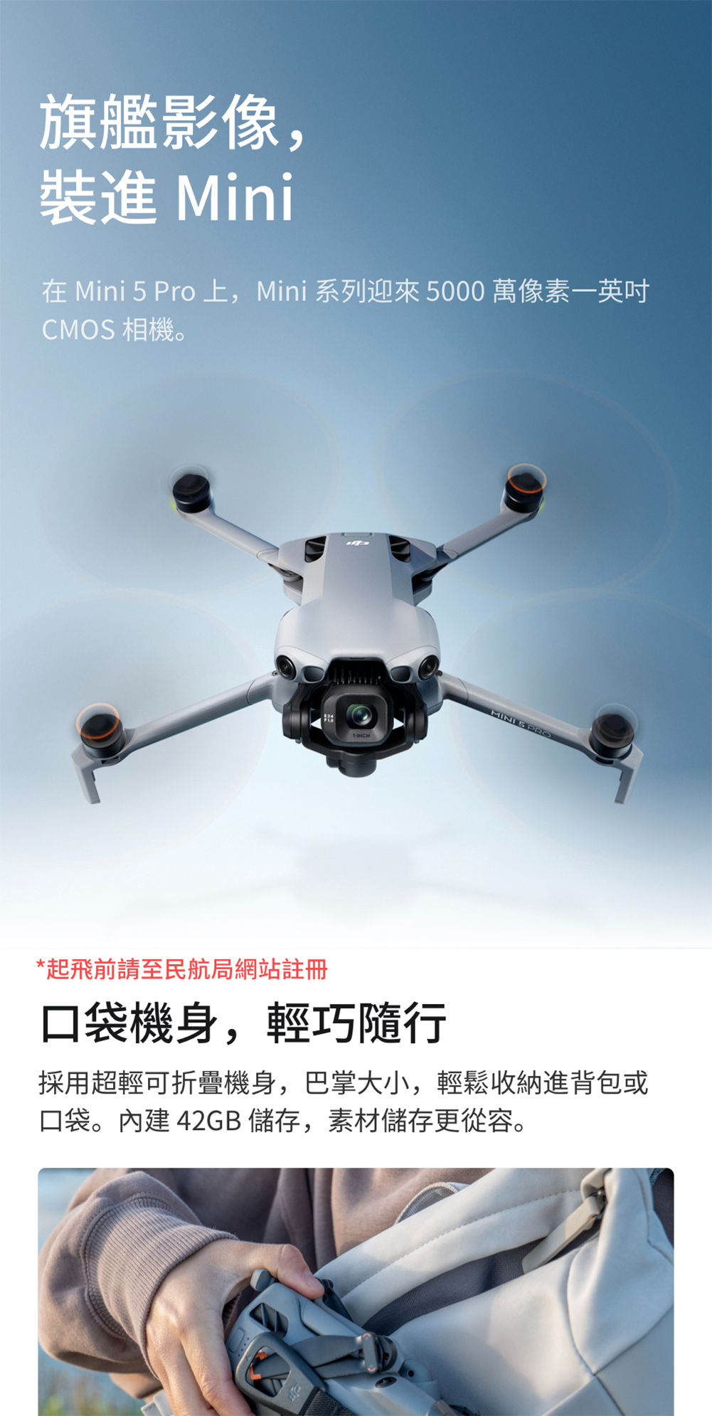 本賣場為 DJI MINI 5 PRO 空拍機(單機/暢飛套裝/帶屏組暢飛套裝/帶屏組長續航暢飛套裝) 賣場,不包含其他配件,拍照商品僅供參考。