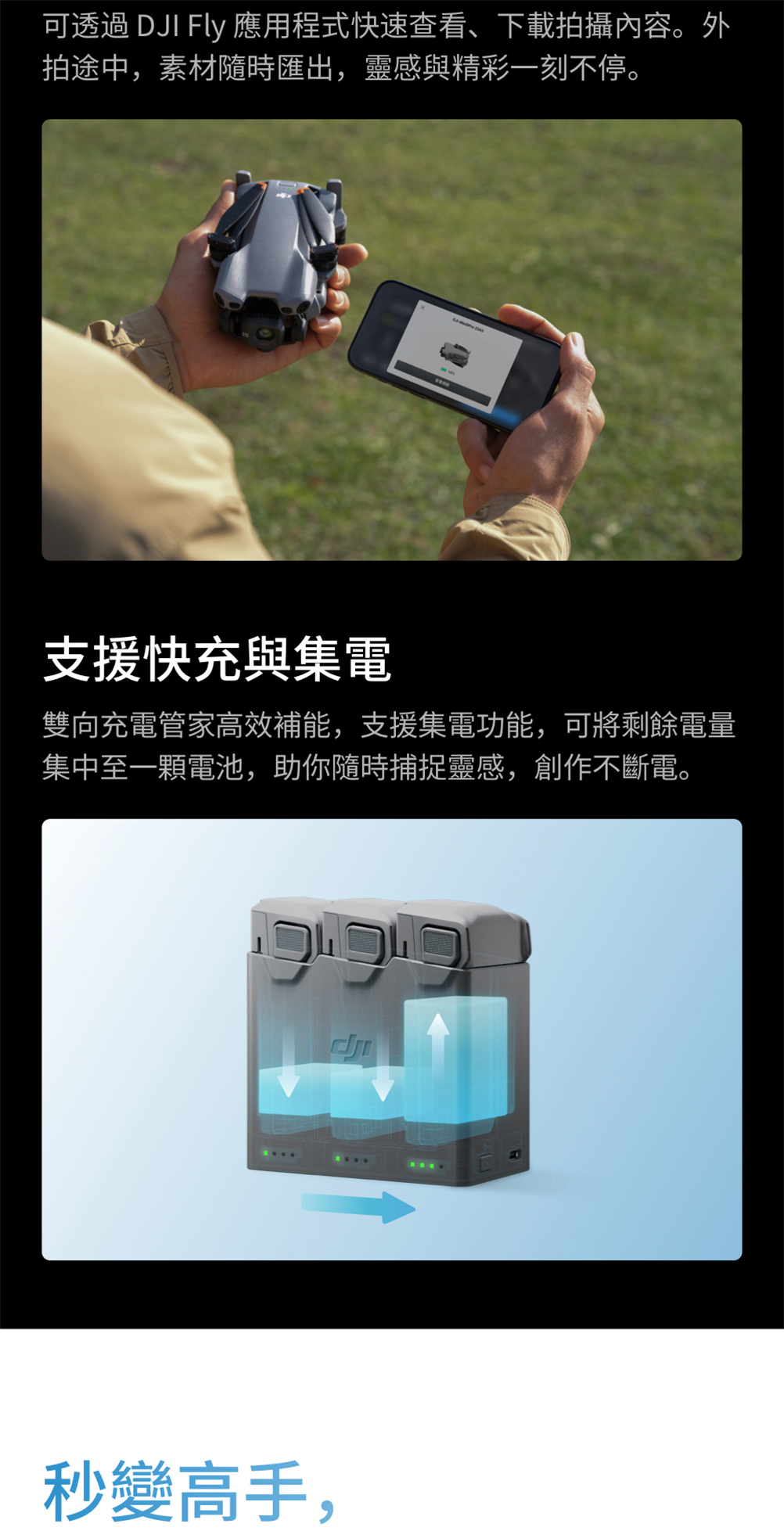 DJI Mini 5 Pro 長續航智慧飛行電池:3 顆電池依序充電