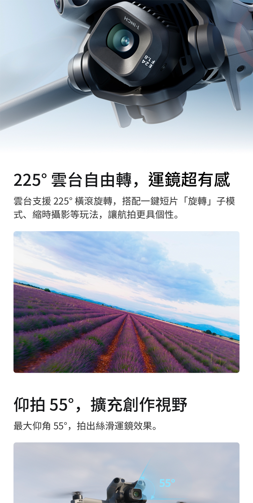 支援無損直拍及 225° 雲台旋轉,運鏡更自由。