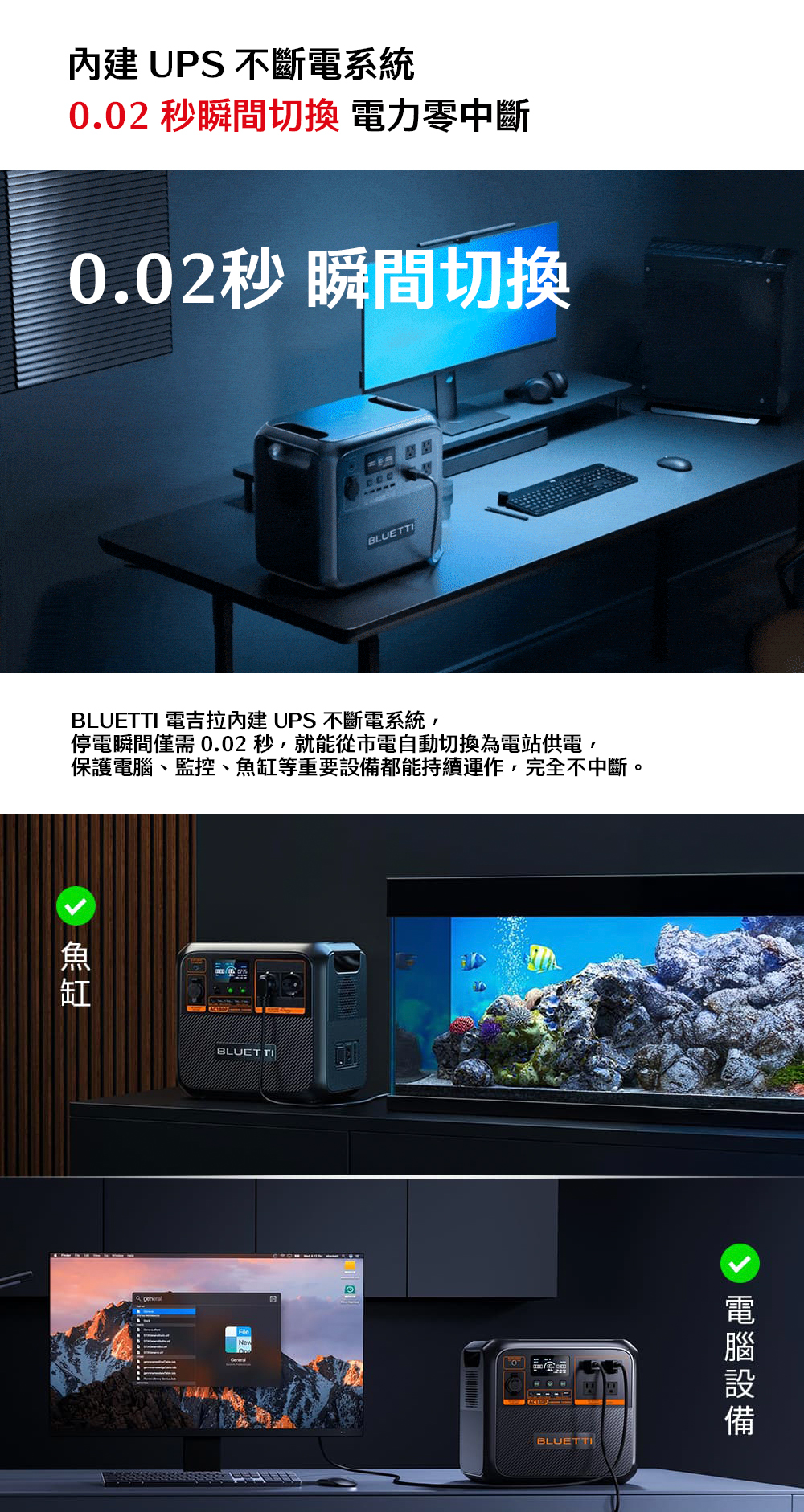 內建UPS不斷電系統,0.02秒瞬間切換。