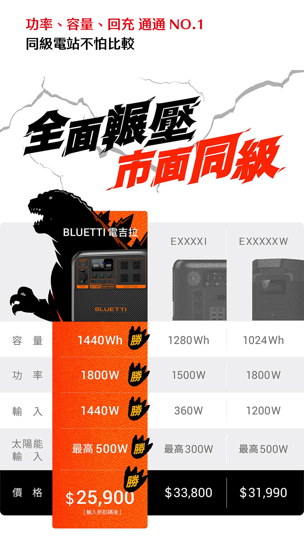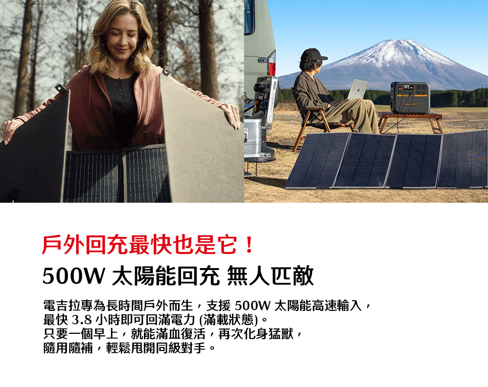 戶外之王,最高支援500W太陽能充電。