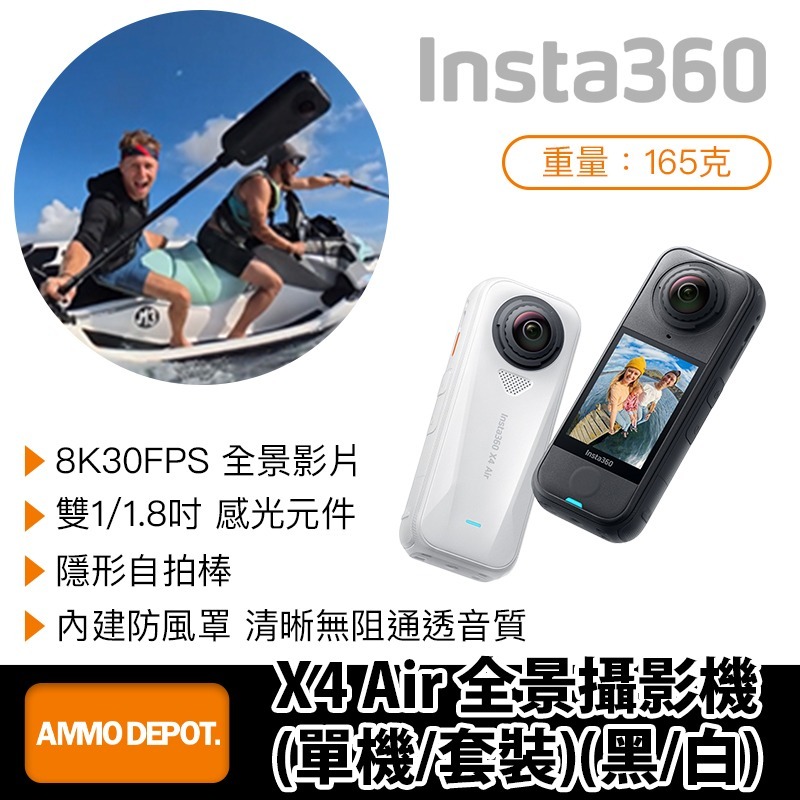 本賣場為 Insta360 X4 Air 全景攝影機單機-黑單機-白套裝-黑套裝-白 賣場,不包含其他配件,拍照商品僅供參考。