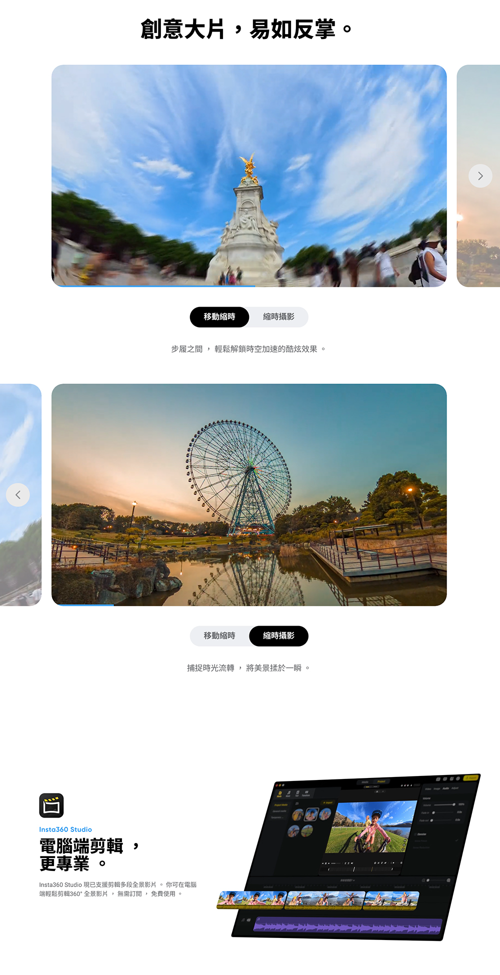 透過Insta360 App的簡易運鏡工具,先拍攝,後取景。