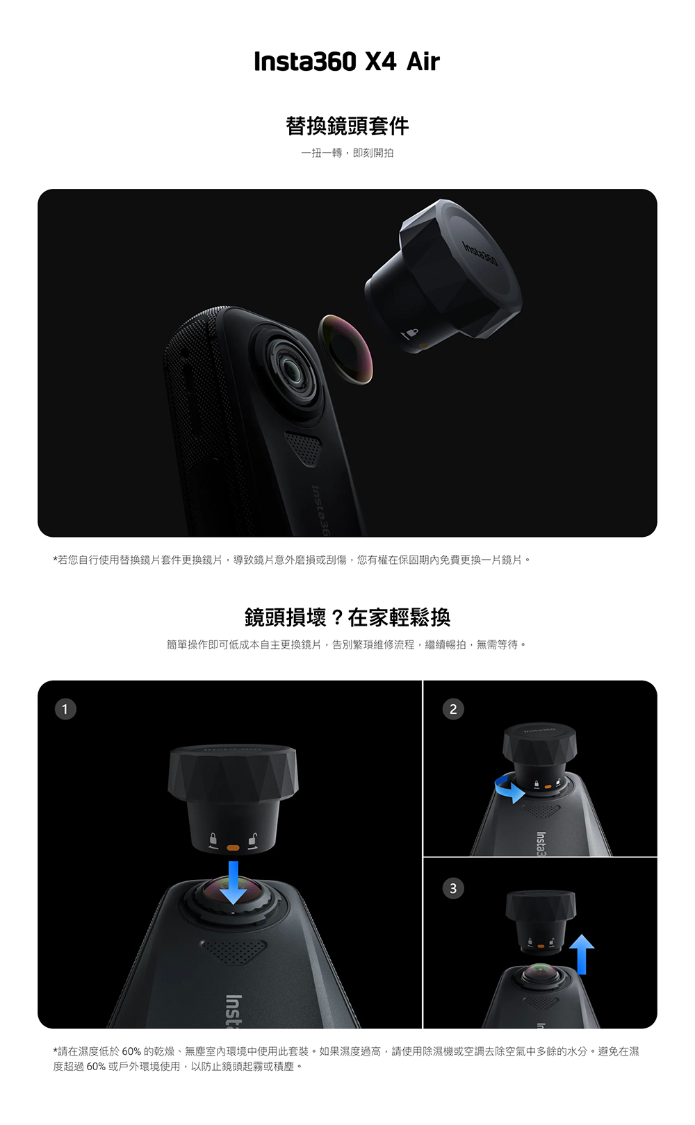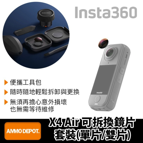 本賣場為 Insta360 X4 Air 可拆換鏡片套裝單片裝雙片裝 賣場,不包含其他配件,拍照商品僅供參考。