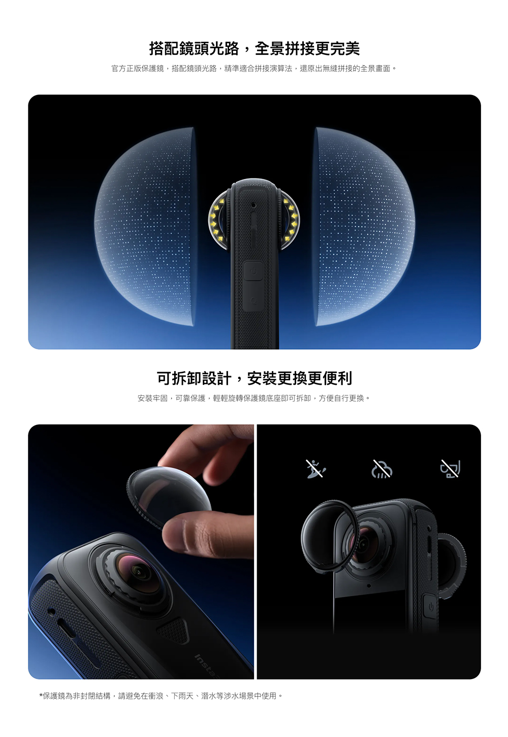 本賣場為 Insta360 X4 Air 高級保護鏡 賣場,不包含其他配件,拍照商品僅供參考。