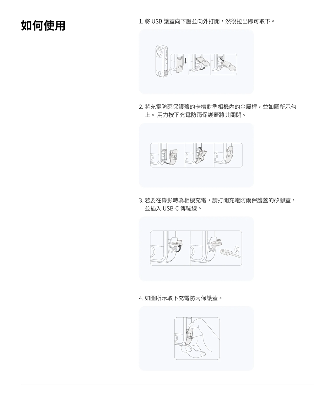 本賣場為 Insta360 X4 Air 充電防雨保護蓋 賣場,不包含其他配件,拍照商品僅供參考。