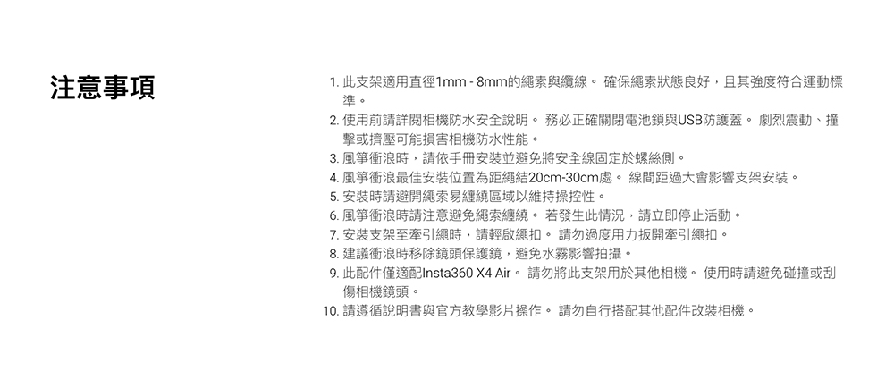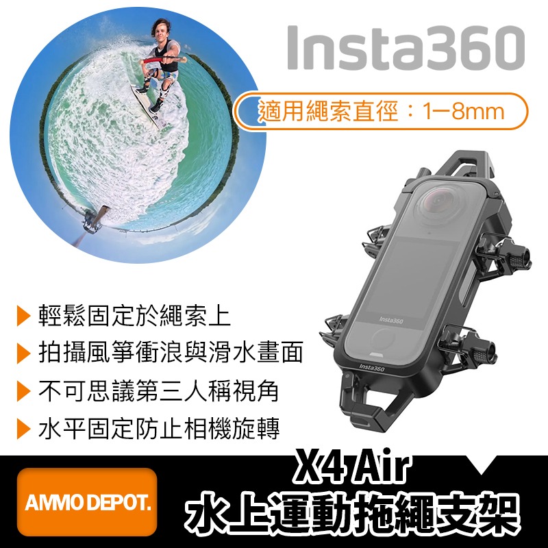本賣場為 Insta360 X4 Air 水上運動拖繩支架 賣場,不包含其他配件,拍照商品僅供參考。