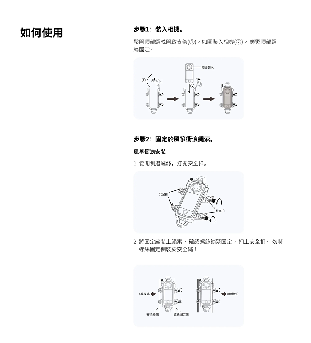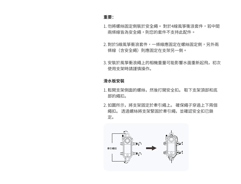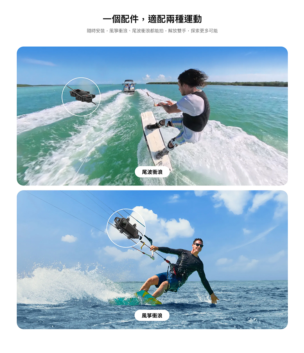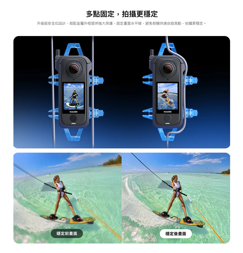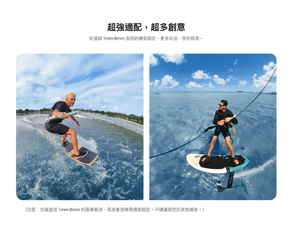輕鬆固定於繩索上,拍攝精彩風箏衝浪與滑水畫面。
