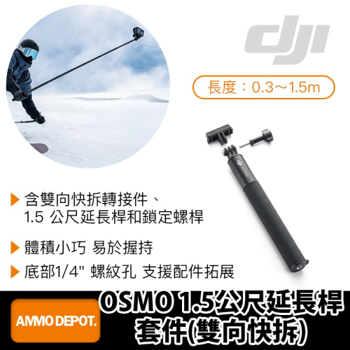 本賣場為 DJI OSMO 1.5公尺延長桿套件(雙向快拆) 賣場,不包含其他配件,拍照商品僅供參考。