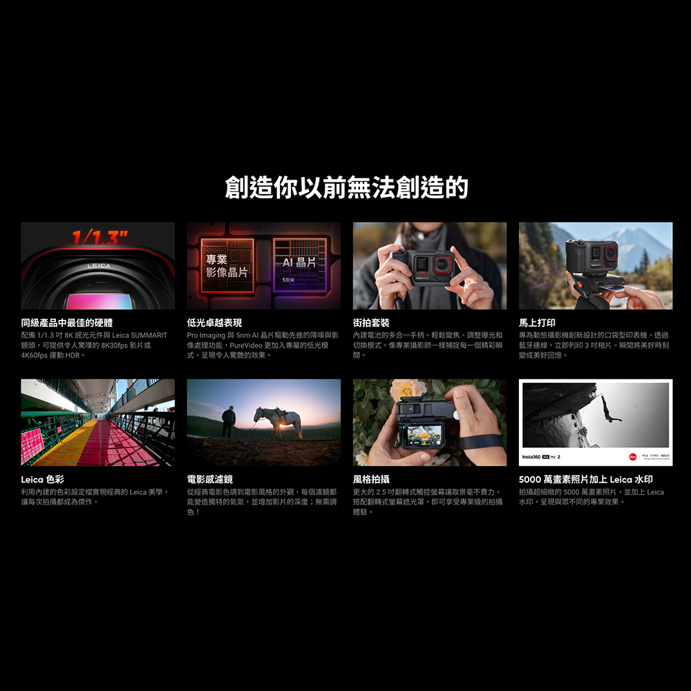 本賣場為 Insta360 Ace Pro 2 運動相機 快照套裝 賣場,不包含其他配件,拍照商品僅供參考。