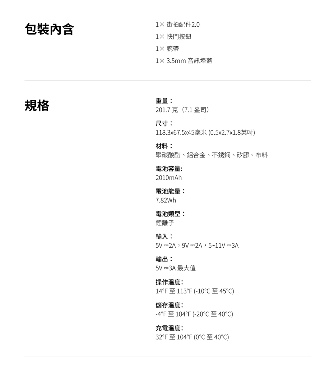 118.3 × 67.5 x 45 毫米(0.5 × 2.7 x 1.8 英吋)