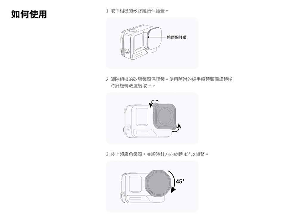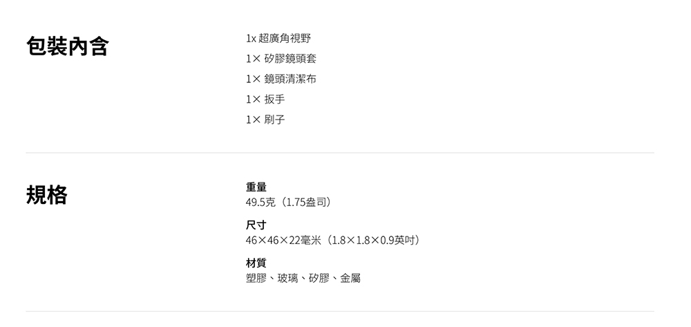 可拆卸鏡頭,提供 189º 超廣視野。* 適合進行身歷其境的電影拍攝。