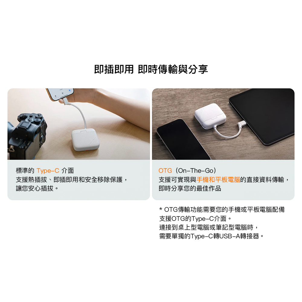 OTG 傳輸功能需手機或平板具備支援 OTG 的 Type-C 連接埠。