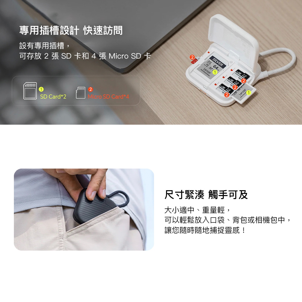 雙卡轉換,支援同時讀取兩張卡!