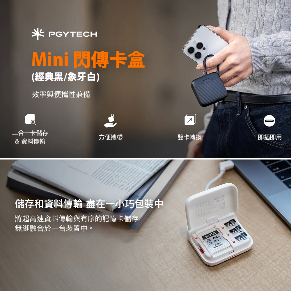 本賣場為 PGYTECH Mini 閃傳卡盒經典黑 #P-GM-393象牙白 #P-GM-396 賣場,不包含其他配件,拍照商品僅供參考。