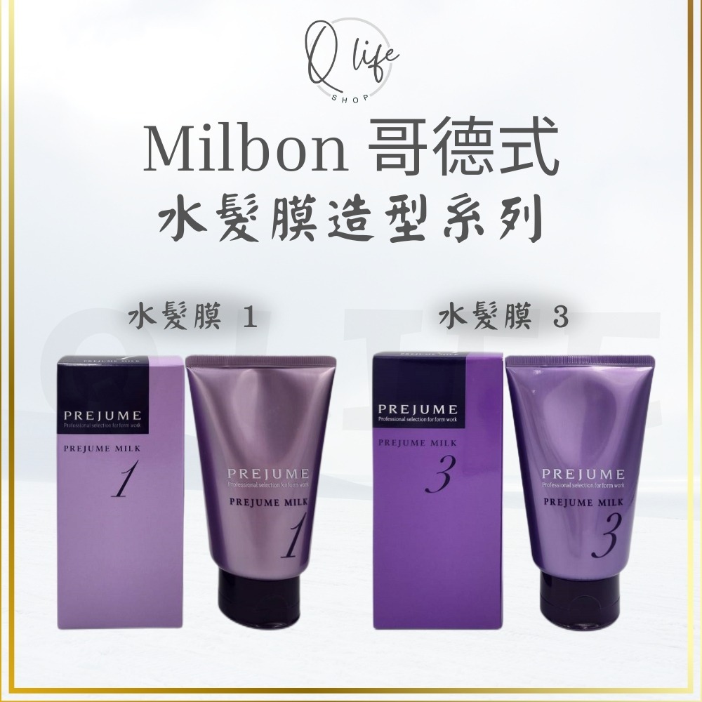 【Q Life】(現貨) 哥德式 Milbon 水髮膜 造型 PREJUME 造型乳 手繞捲 MILK1 MILK3