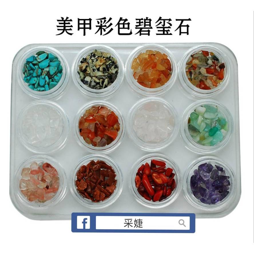 【采婕美學】美甲五彩水晶石 (12色一套) 五彩石 彩晶石 天然水晶石 水晶碎石 彩色石 玉石 12格圓盤天然水晶石