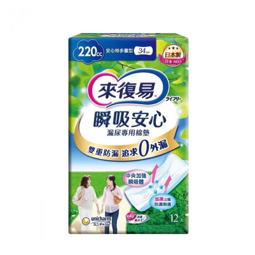 來復易 瞬吸安心 漏尿專用棉墊 安心特多量型220cc
