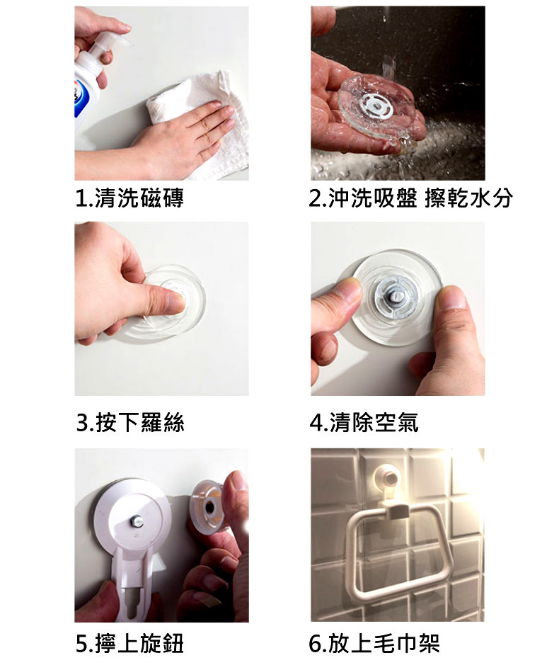 3、安裝前用水沖洗並晾乾,吸附於牆面12小時,確認穩固後即可 使用;