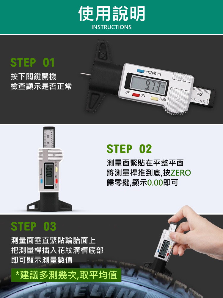 🚗【數位胎紋深度尺|汽車胎紋檢測必備】
