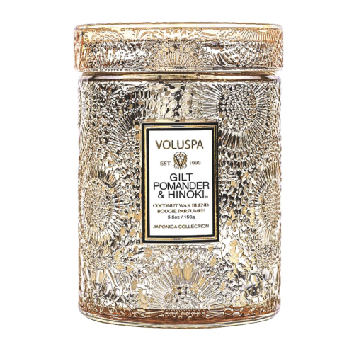 美國 VOLUSPA 金耀檜木 香薰蠟燭-浮雕玻璃罐5.5oz/156G,平輸,市價1280元,下單前請先詢問貨量