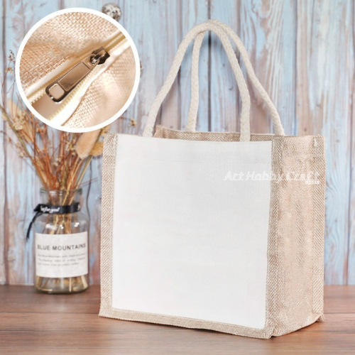 小麥手作舖︱小款【拉鍊/棉繩】仿麻布袋/手提袋︱蝶古巴特 拼貼麻布袋 彩繪胚布袋 購物袋 午餐袋 手提袋 環保袋 素坯袋
