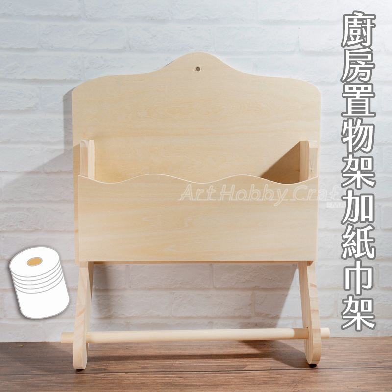 小麥手作舖∣廚房置物架加紙巾架∣紙巾架 蝶古巴特 拼貼 彩繪木器DIY 美勞 置物架 捲筒紙巾架 收納架 木質置物架