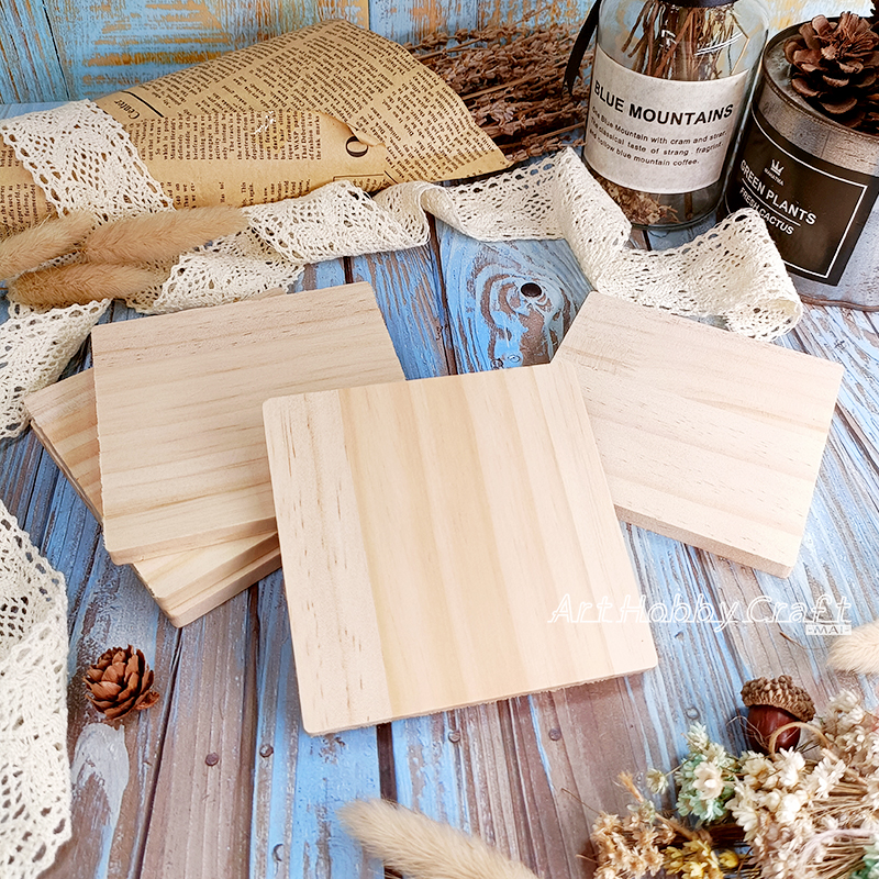 松木杯墊 松木波浪式【杯墊盒】∣ 實木杯墊 彩繪 松木杯墊 手作 圓木杯墊 方木杯墊 蝶古巴特 拼貼∣小麥手作舖