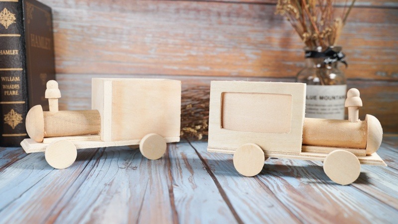 台灣現貨 小麥手作舖∣火車頭相框筆筒∣蝶古巴特 拼貼 彩繪 木器 素胚 原胚 DIY 美勞 幼兒園 安親班 手作材料