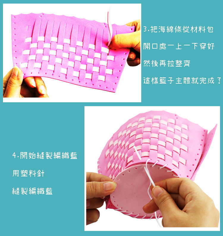 2️⃣ 開始編織:將海綿條依照說明書一步步穿插整齊