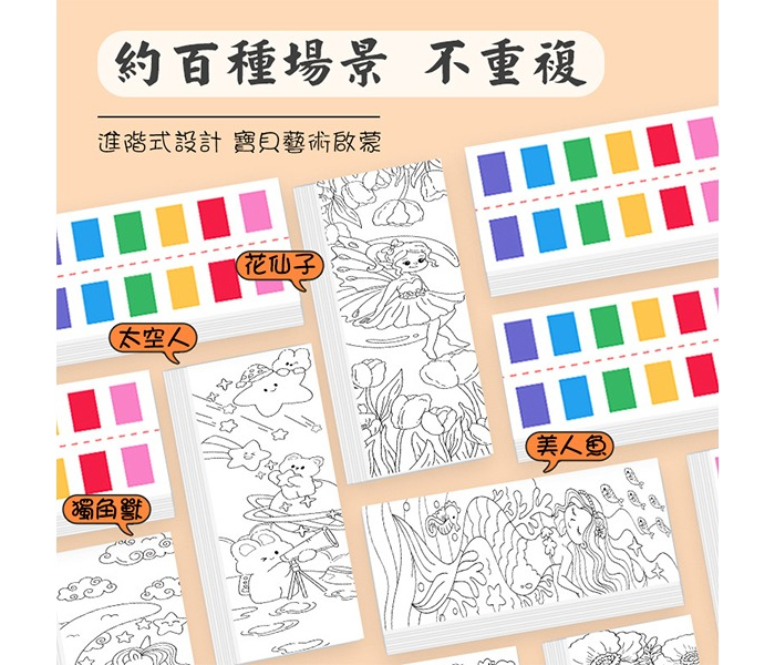台灣現貨 小麥手作舖︱沾水即畫水彩畫本︱水彩填色畫 兒童水粉畫 塗鴉繪本 畫畫 塗色 水畫本 幼兒園 親子手作 兒童手作