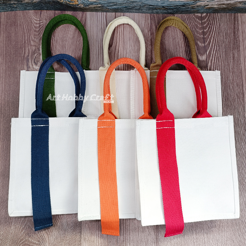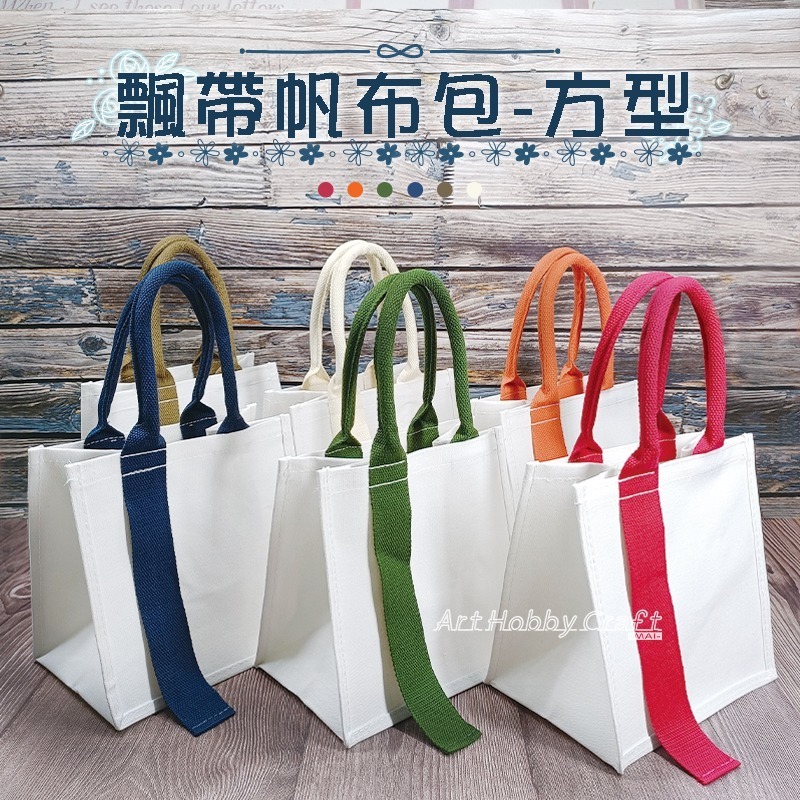 台灣現貨 小麥手作舖︱飄帶帆布包-方型︱帆布袋 環保袋 胚布包 空白帆布袋 時尚方形袋 拼貼帆布袋