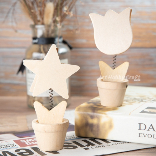 台灣現貨 小麥手作舖︱小盆栽=留言板夾/名片夾︱小木器 木夾 名片夾 留言夾 蝶古巴特 拼貼 彩繪 素胚 原胚 DIY