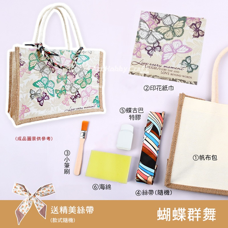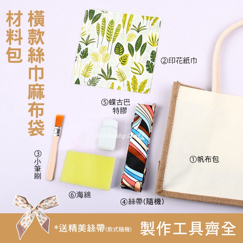橫款絲巾麻布袋-材料包 團課迷你麻布袋-材料包︱團課親子活動 蝶古巴特 手提袋diy材料包 麻布袋材料包︱小麥手作舖