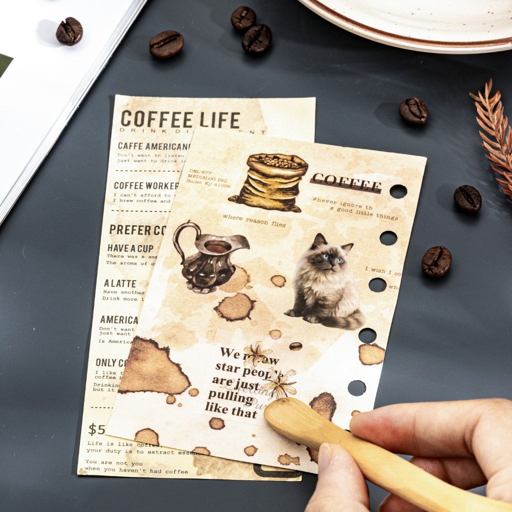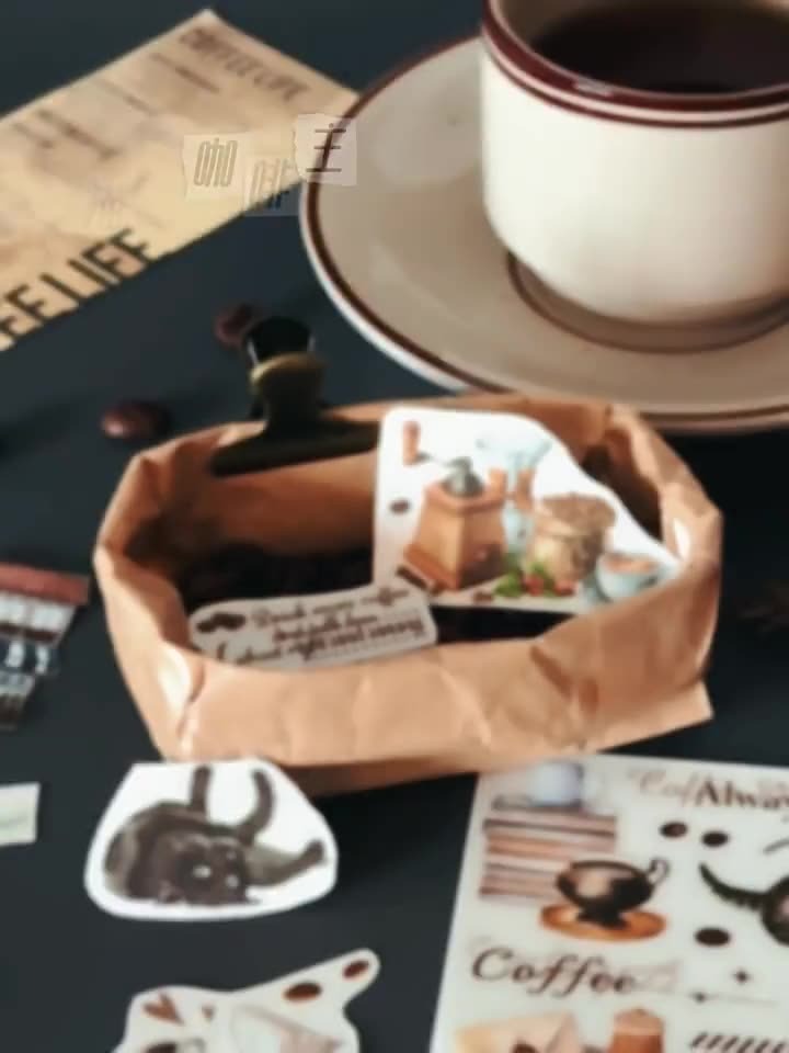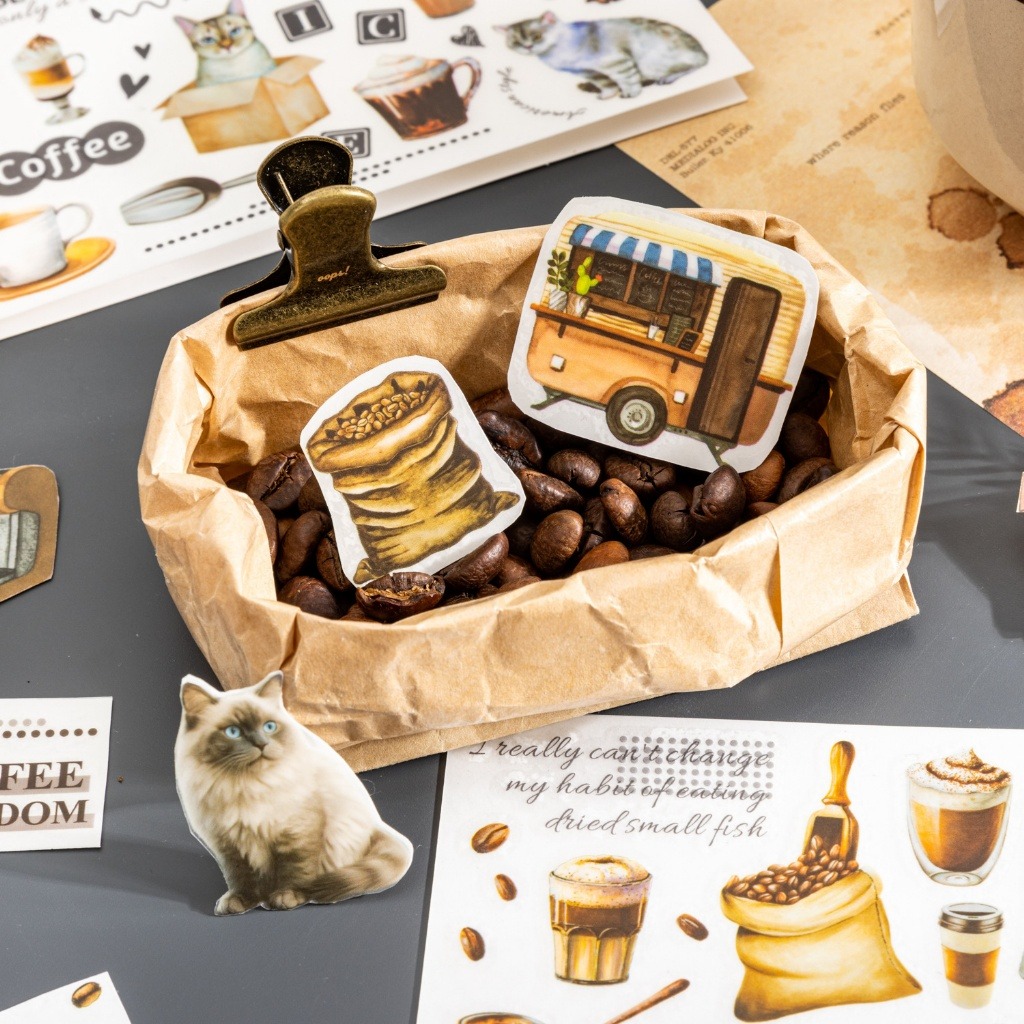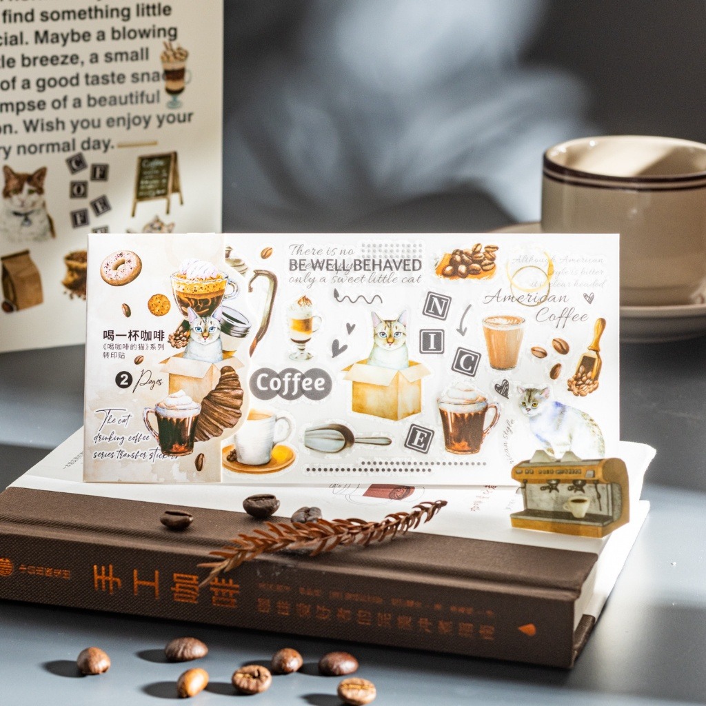 🔖 #貓咪貼紙 #咖啡主題 #咖啡控拼貼 #可愛風格轉印貼 #手帳素材 #咖啡與貓