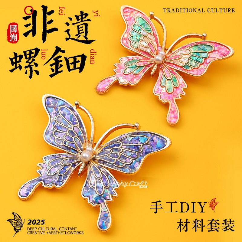 台灣現貨 小麥手作舖∣DIY螺鈿蝴蝶胸針∣DIY材料包 胸針 髮簪 髮夾 材料包 非遺手工 自製貝殼 手作材料包