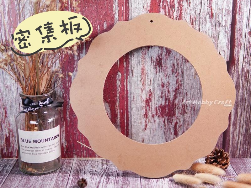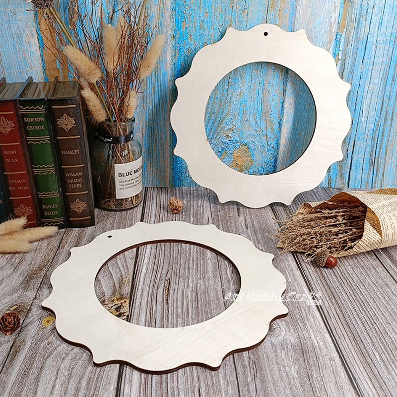 🎨 基礎木圈搭配可愛波浪邊造型,適合節慶花圈DIY