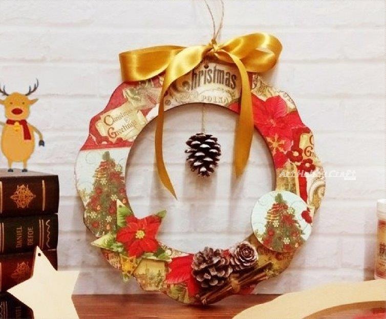 🎍 可搭配松果、緞帶、布花、紙飾等材料做成應景花圈(配件需另選購)