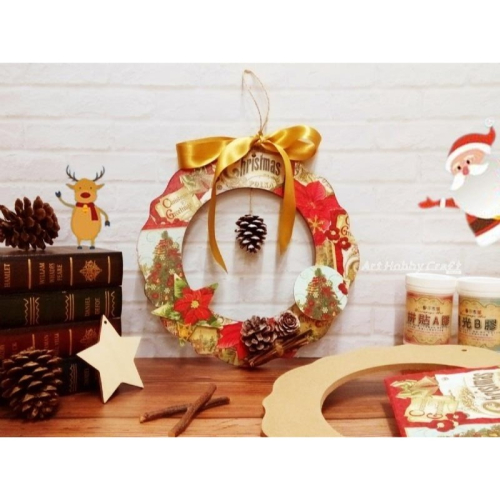 🎄木質花圈-25cm︱聖誕花圈 花邊木圈 手作裝飾圈