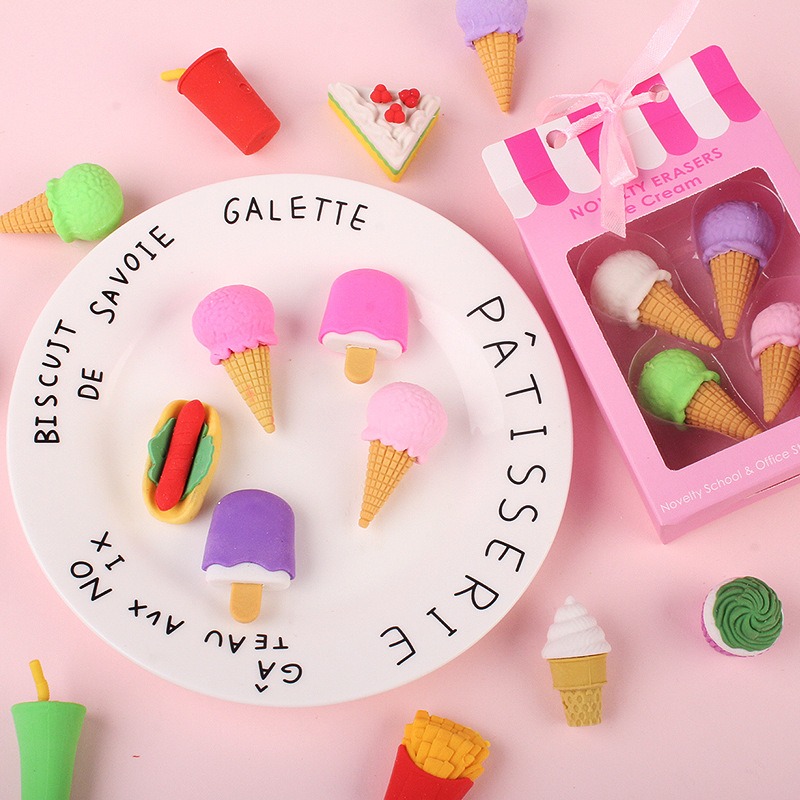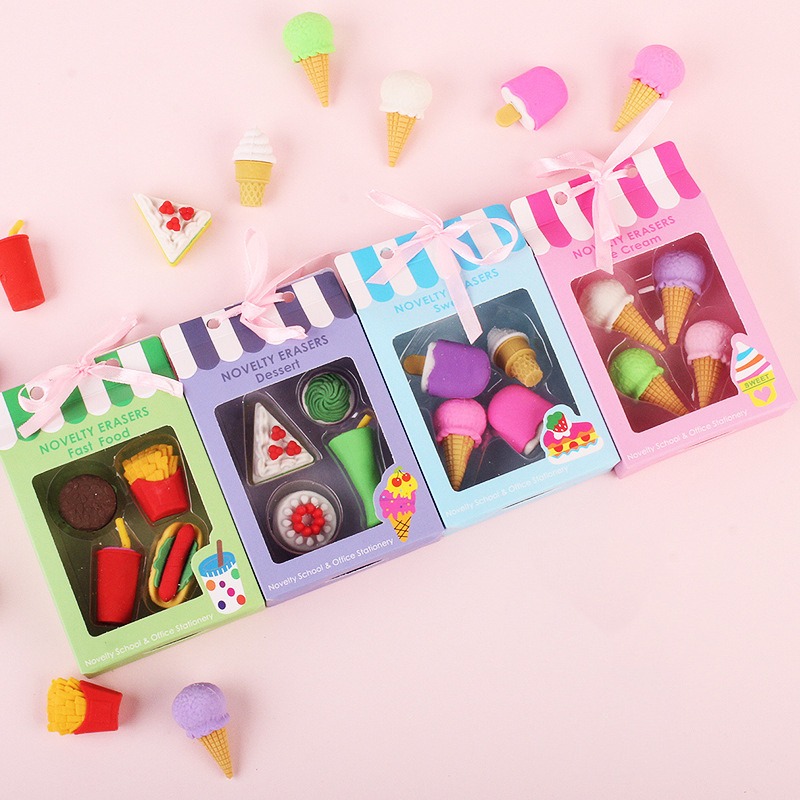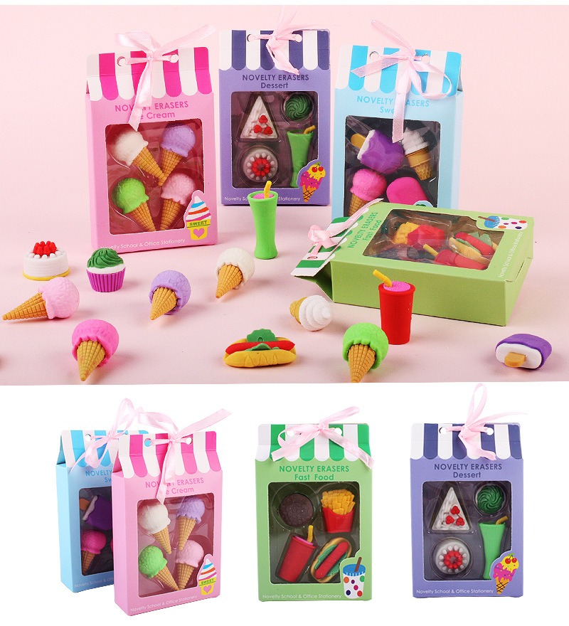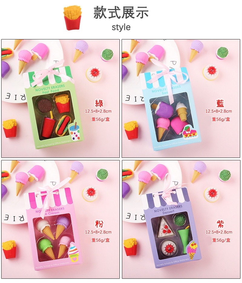 甜品蛋糕橡皮擦套裝∣台灣現貨 太空人像皮擦 兒童小禮品 創意 可愛 蛋糕禮盒 鉛筆擦組︱小麥手作舖