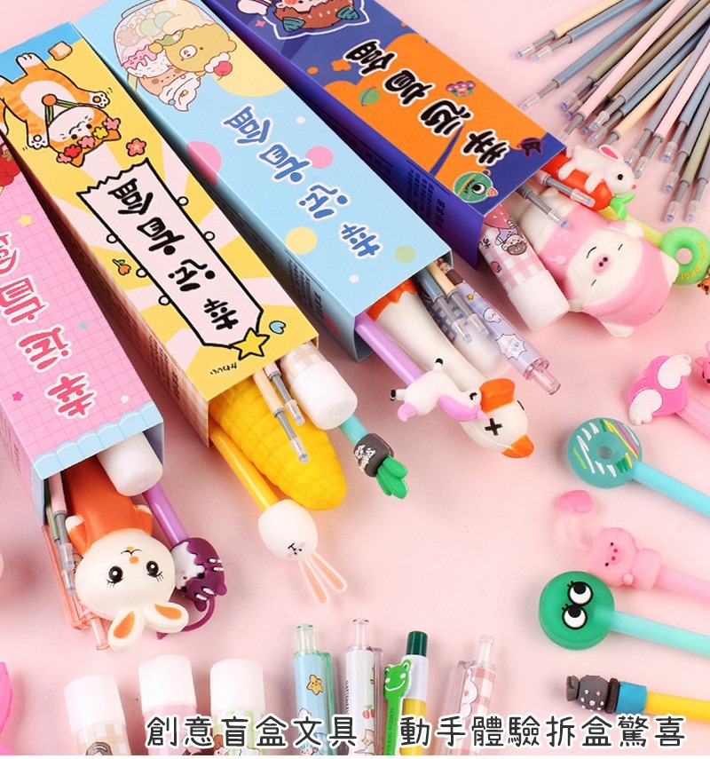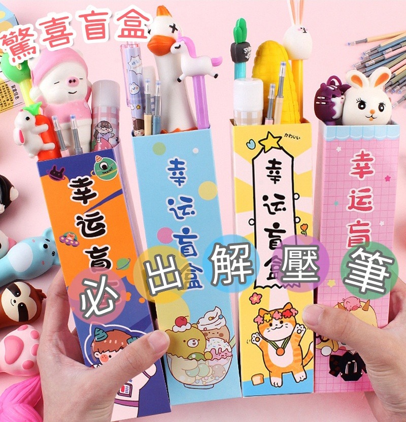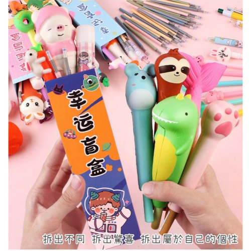 幸運盲盒減壓筆∣聖誕節 聖誕禮物 減壓中性筆 替換筆芯 卡通文具盲盒 猜猜盒 文具 禮品 贈品︱小麥手作舖