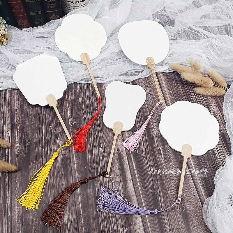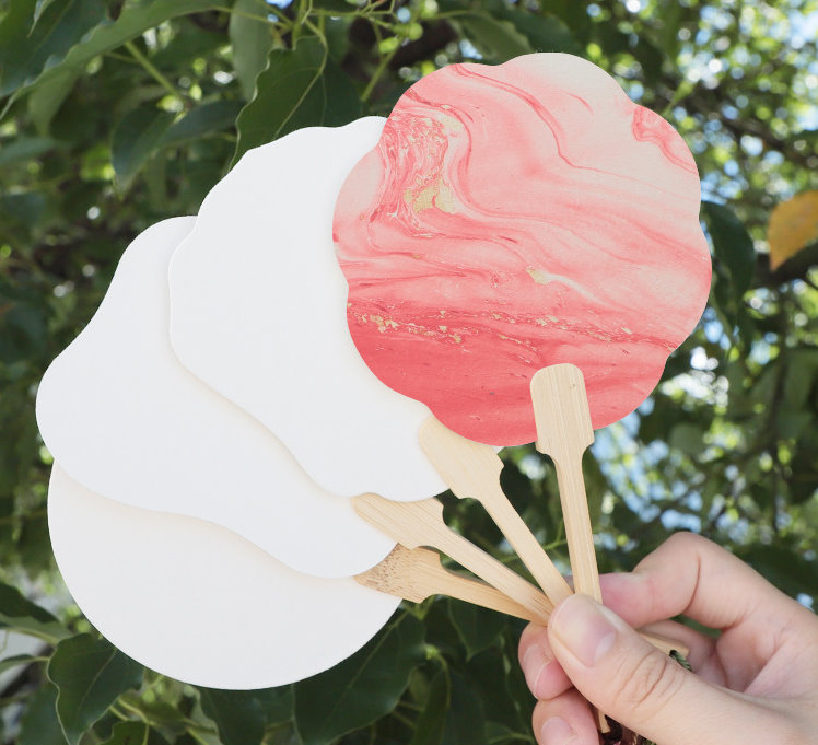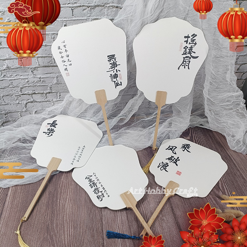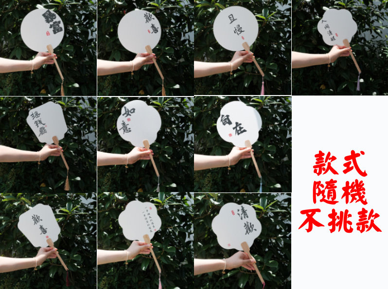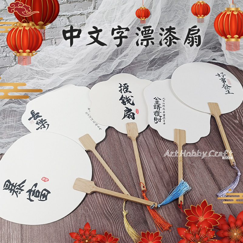 仿木塑料扇架 中文字漂漆扇 漂漆水拓空白扇 迷你Q版漂漆扇水拓扇 ︱非遺漆扇 DIY 空白團扇︱小麥手作舖