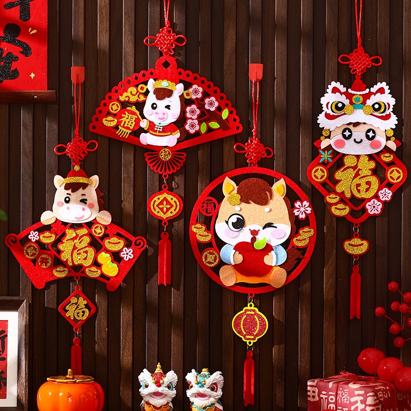 福字新年掛飾材料包︱2026馬年 DIY材料包 手工材料 不織布 免裁剪 幼兒DIY裝飾 黏貼掛件︱小麥手作舖