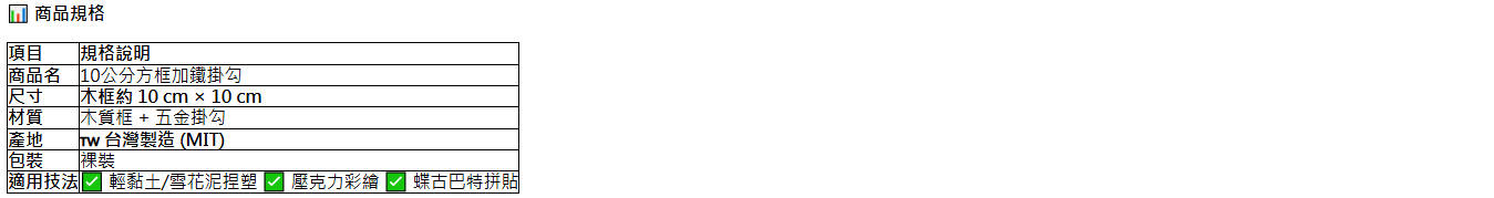 10公分方框加鐵掛勾︱MIT台灣製 黏土木器 雪花泥木胚 木質掛勾 鑰匙掛勾 蝶古巴特 拼貼木器