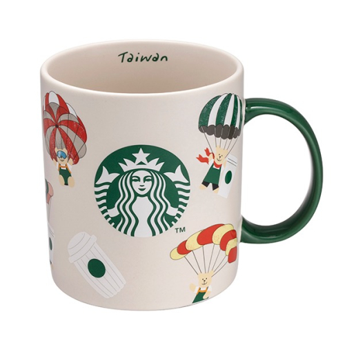 設計以門市位於傘兵營區的降落傘及飛行傘特色出發。充滿活力的星巴克熊夥伴穿上飛行裝,以降落傘翱翔天空,享受飛行樂趣。繽紛的降落傘和品牌經典外帶杯造型氣球,交織成奇幻的飛行美景,邀請顧客一同與大自然來個最真實的擁抱。
