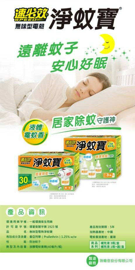 品 名 :無味型電熱淨蚊寶(器+40ML/盒)