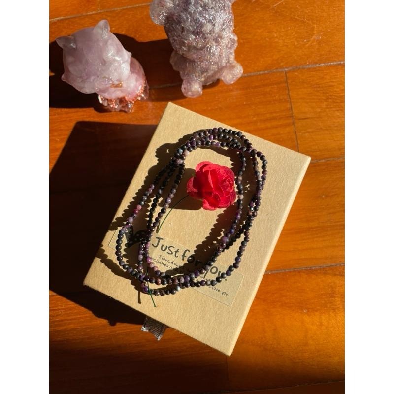 天然約2mm原礦舒俱萊,手圍約16.8可繞手三圈,亦可作為項鍊配戴。